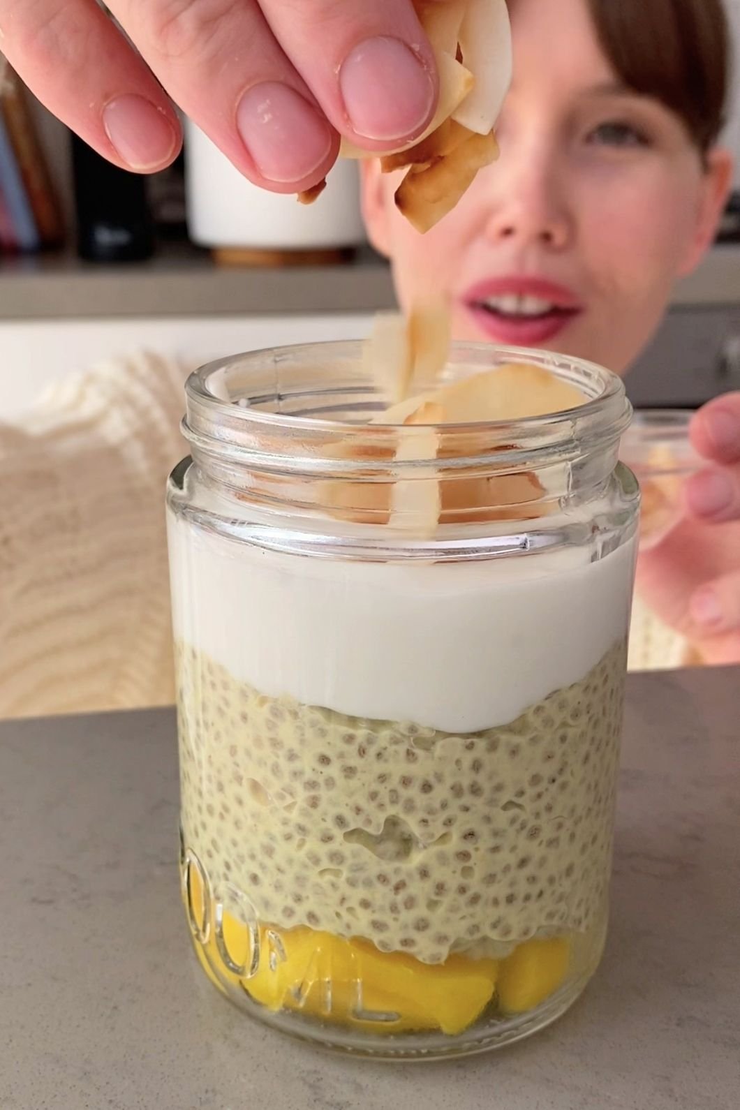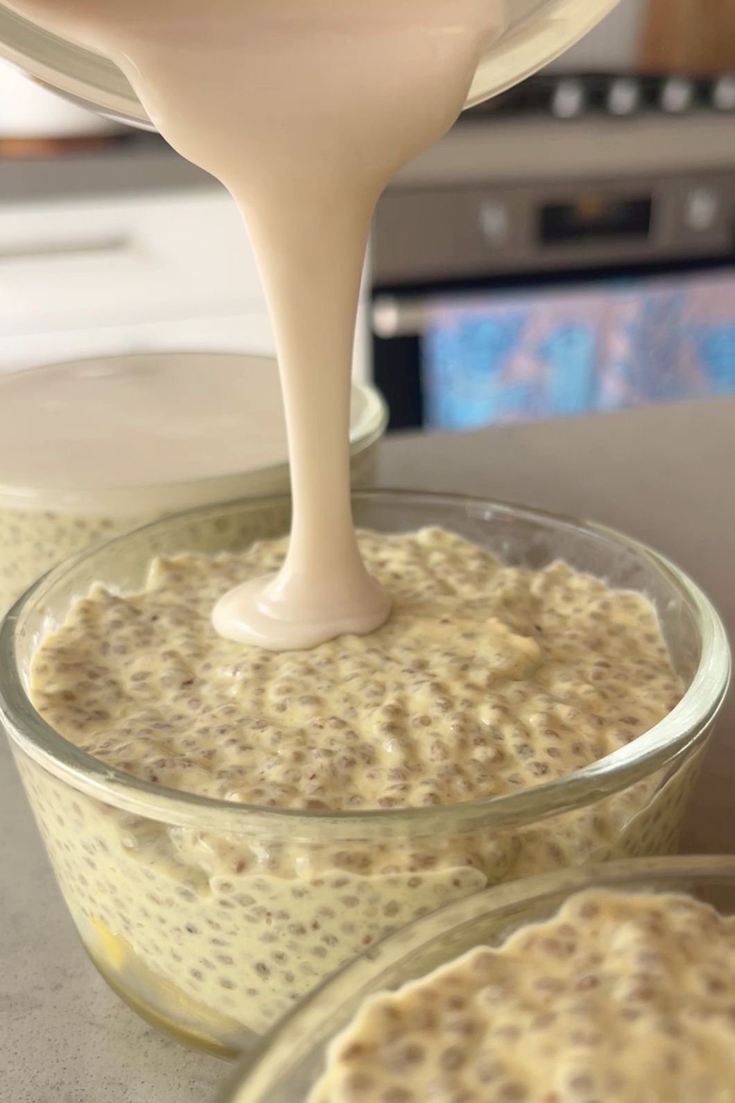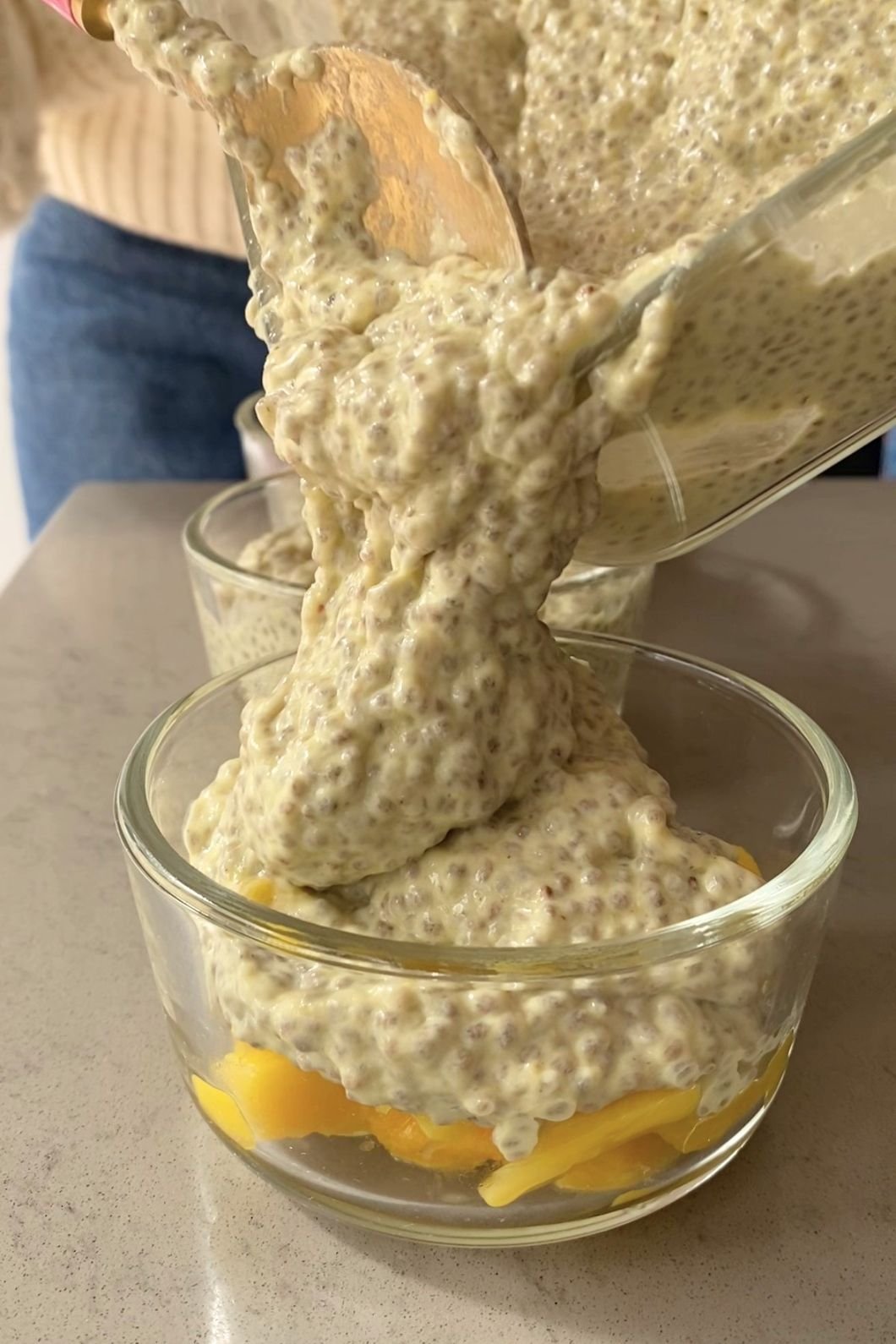 - Transfer into individual jars or containers. Optional: melt chocolate and pour a thin layer over the top of each jar or container. Refrigerate for at least 2 hours (or overnight), or until it reaches a thick, gelatinous pudding consistency.