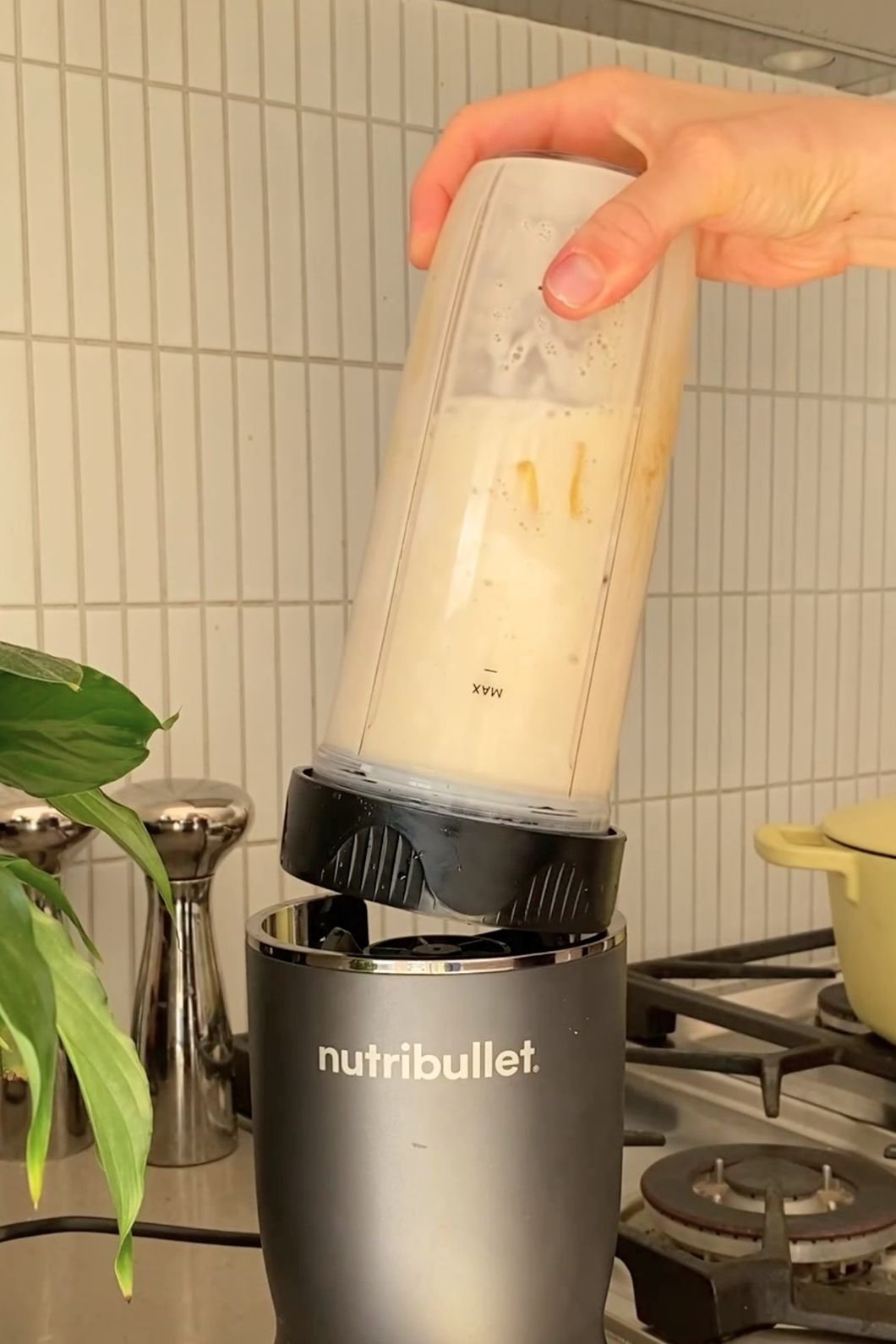 Step One: Blend the frozen mango, soy milk, yogurt, vanilla extract, and maple syrup until smooth.